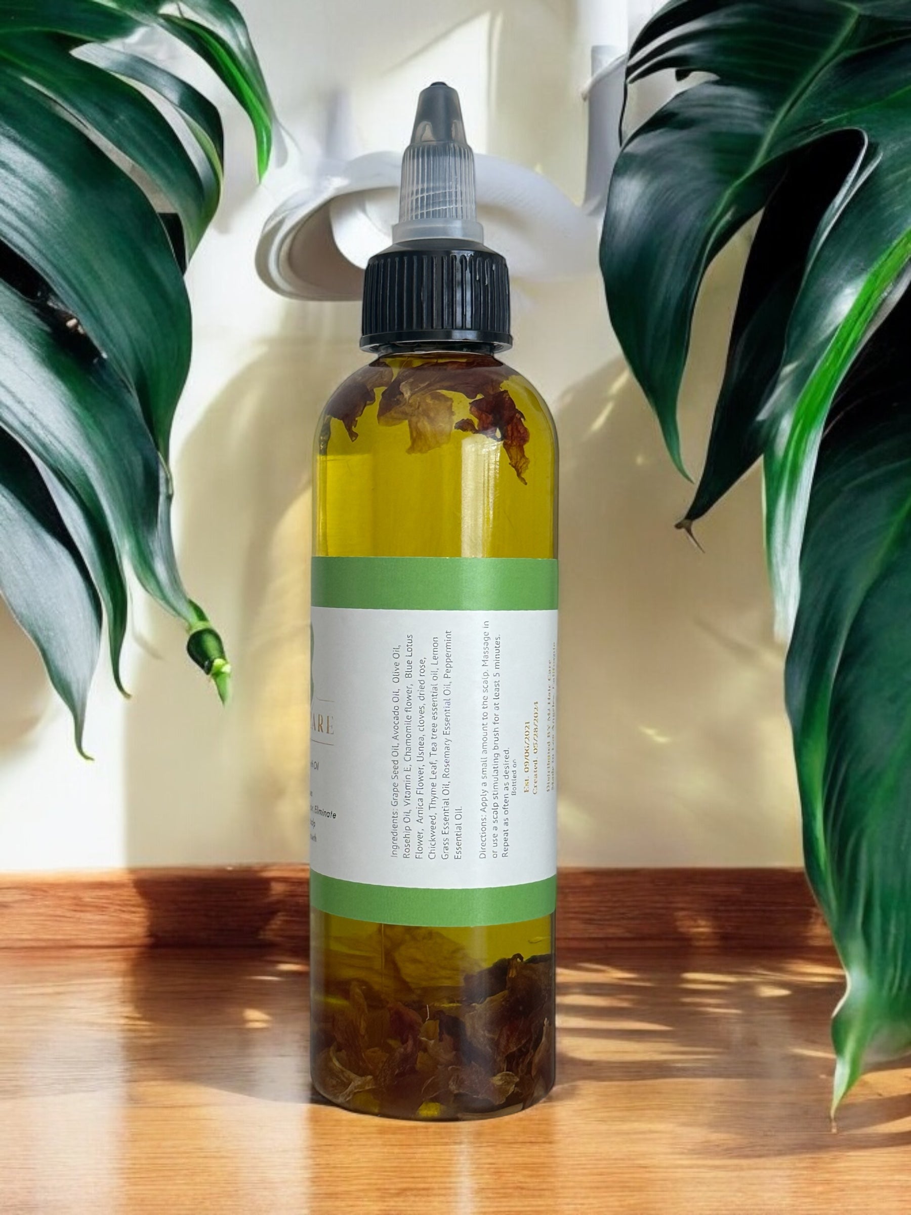 The Anointed Hair Growth Oil has quickly become the star player of our product line. It's a testament to the power of nature and the healing properties of carefully selected, locally sourced ingredients. This oil is enriched with a blend of grape seed oil, avocado oil, olive oil, rosehip oil, vitamin E, chamomile flower, blue lotus flower, and arnica flower, among other wonderful herbs.